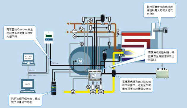 4)采用電子伺服電機(jī)控制空氣流量,對(duì)應(yīng)一級(jí)和二級(jí)燃燒,暫停時(shí)空氣擋板自動(dòng)關(guān)閉以減少爐內(nèi)熱量損失;